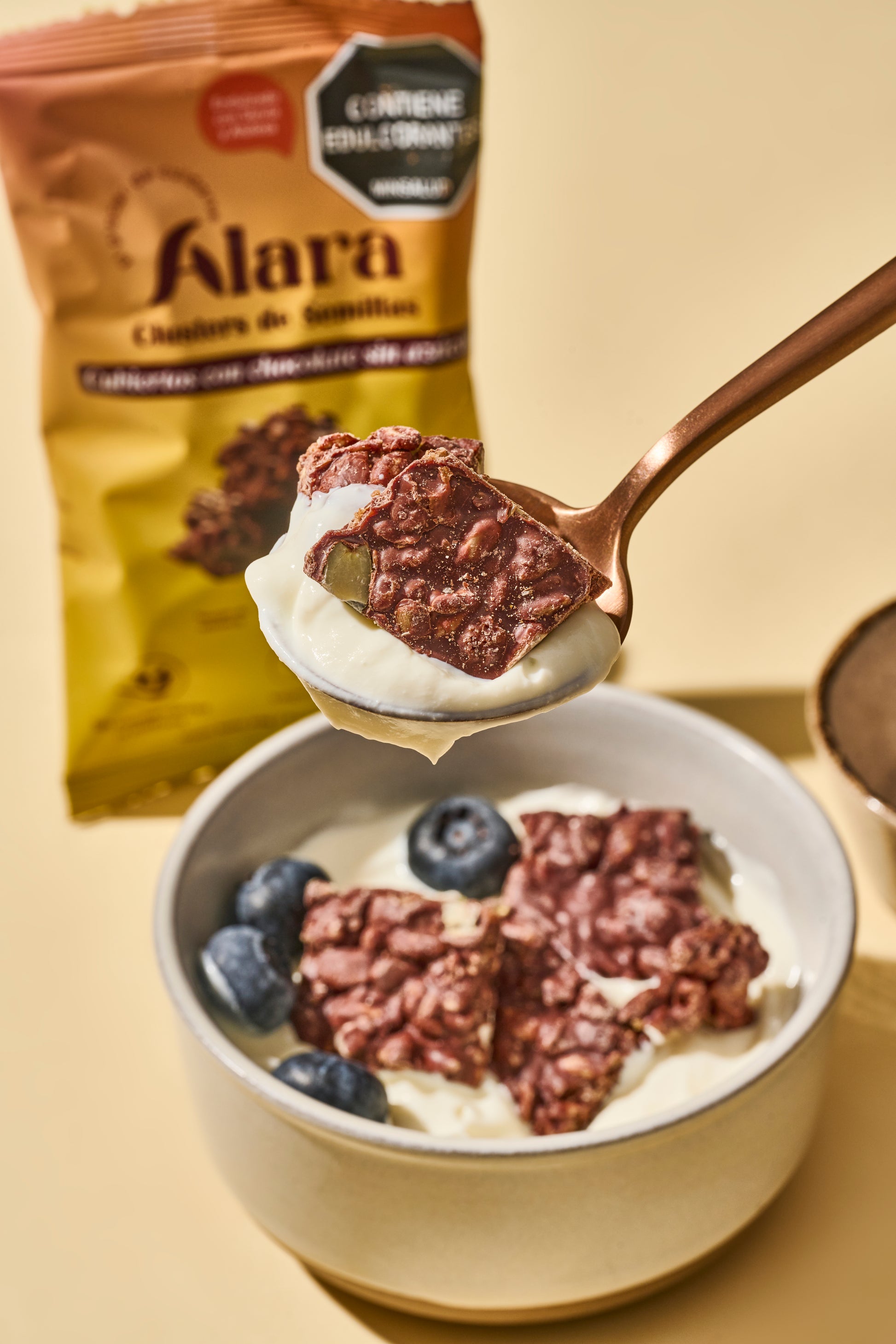 Ingredientes: semillas de calabaza, linaza, girasol, arroz soplado y chocolate al 60% sin azúcar (masa de cacao, alulosa, manteca de cacao y stevia)